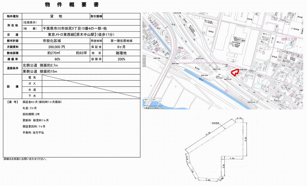 千葉県市川市田尻5-15-4 (原木中山) 原木中山 貸地 詳細データ