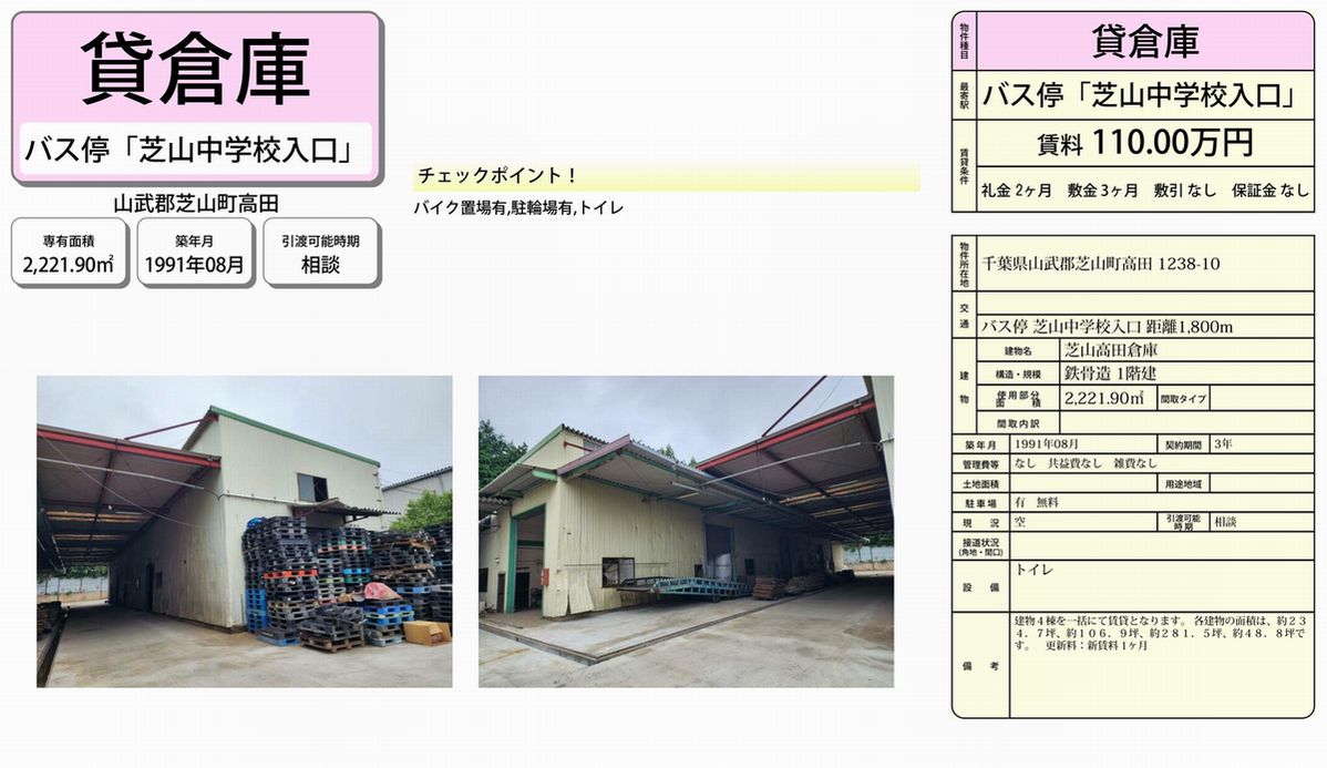 千葉県山武郡芝山町高田1238-10 (松尾) 芝山高田倉庫 詳細データ