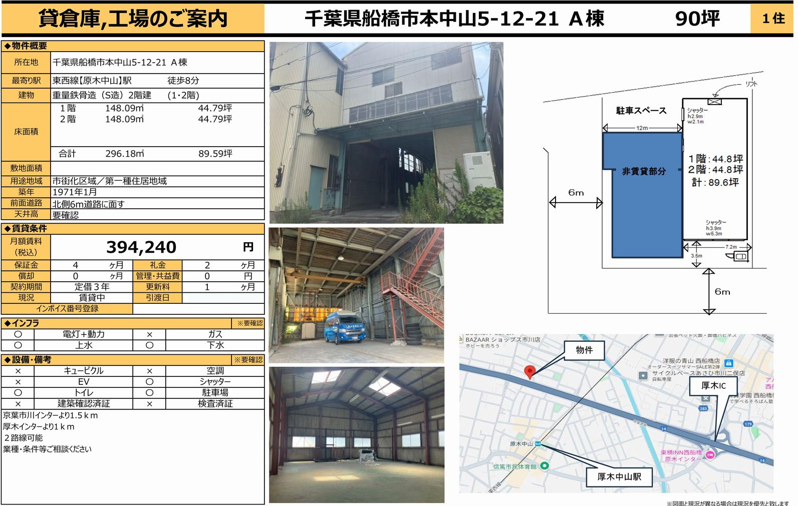 千葉県船橋市本中山5-12-21 (原木中山) 原木中山 倉庫A 詳細データ