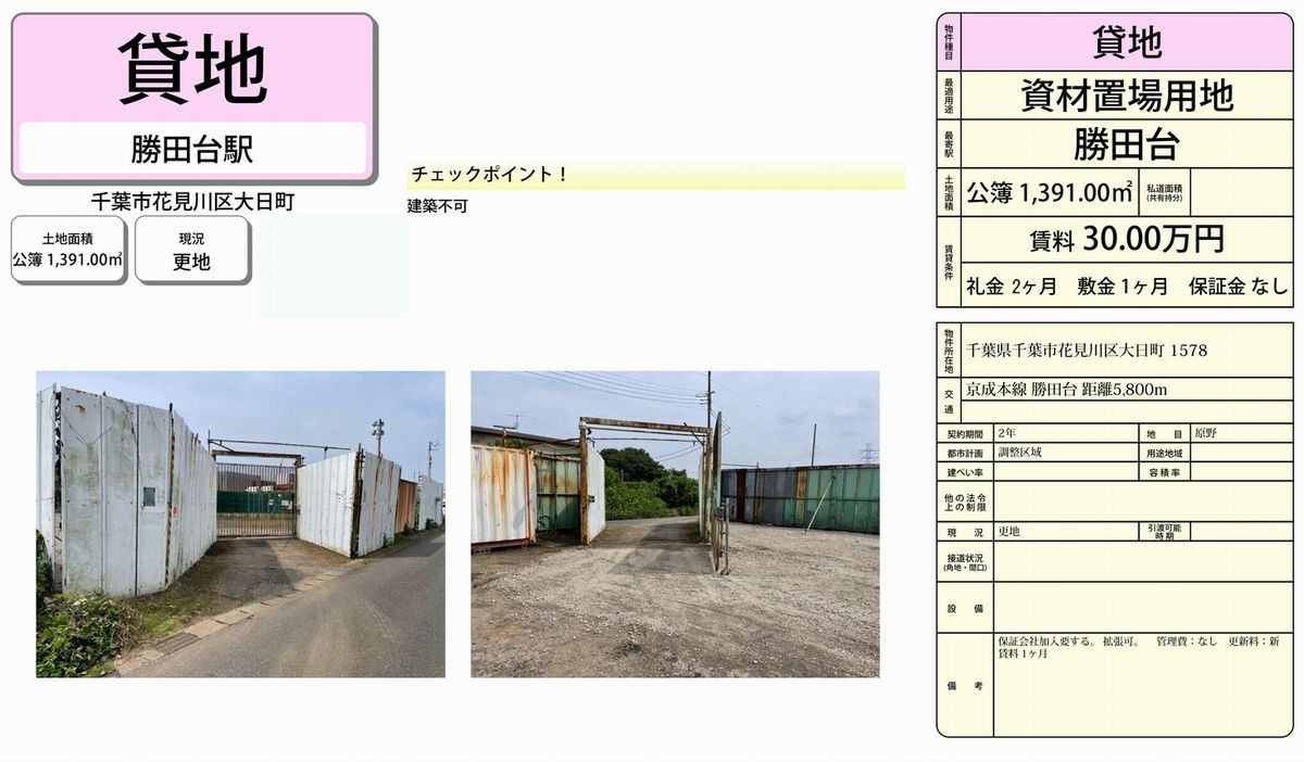 千葉県千葉市花見川区大日町1578 (勝田台) 勝田台 貸地 詳細データ
