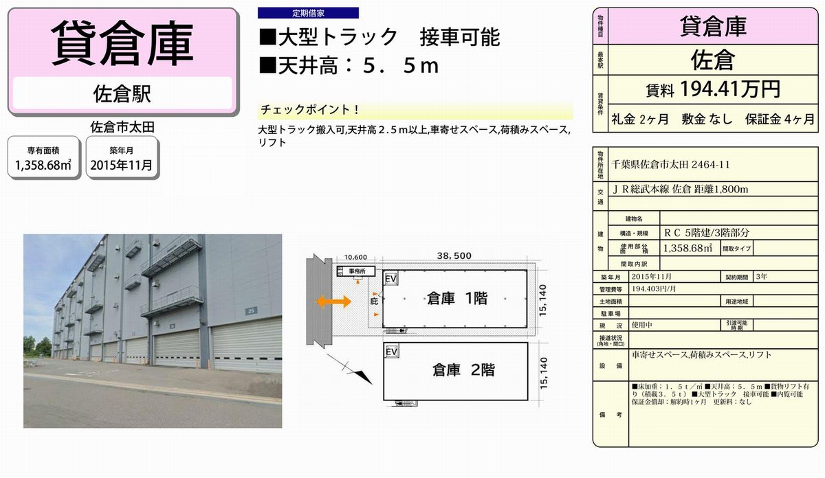 千葉県佐倉市太田2464-11 (佐倉) 佐倉 倉庫 詳細データ