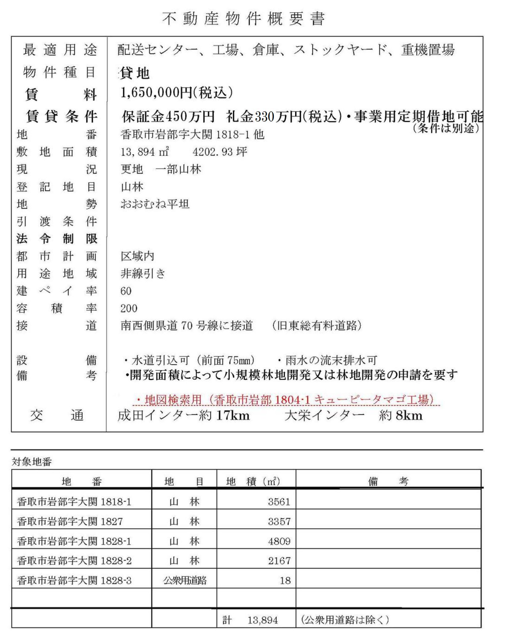 千葉県香取市岩部1818-1 (成田空港) 成田空港 貸地 詳細データ