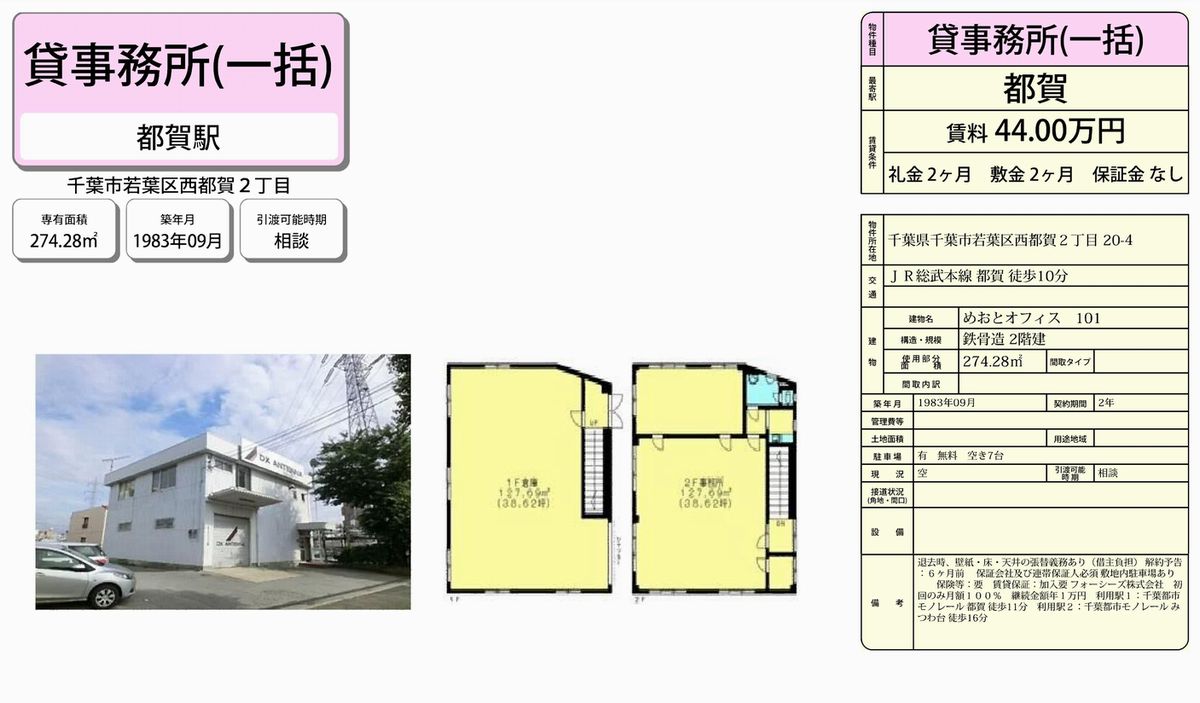千葉県千葉市若葉区西都賀2-20-4 (都賀) めおとオフィス 詳細データ
