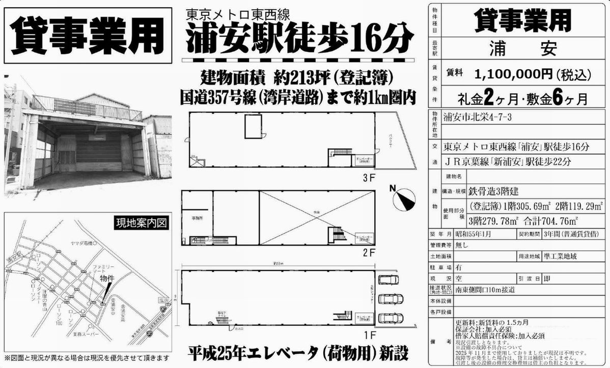 | 物件名 | 浦安 倉庫 1棟貸 |