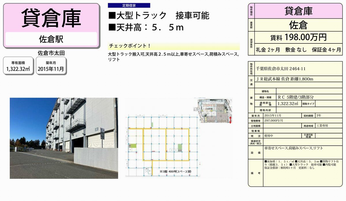 千葉県佐倉市太田2464-11 (佐倉) 佐倉 倉庫 詳細データ