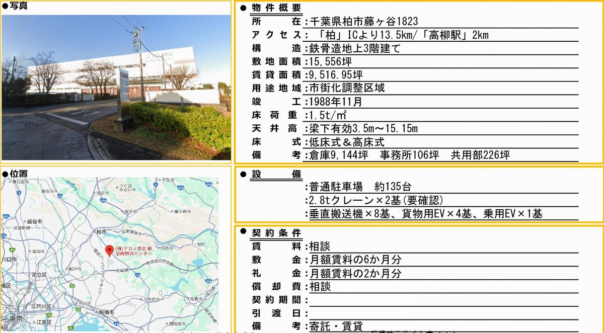 千葉県柏市藤ケ谷1823の貸倉庫・貸工場・賃貸土地を探すなら中小企業を応援する千葉貸倉庫.comでニーズに合った物件を検索してください。千葉県柏市藤ケ谷1823の事務所付貸倉庫、クレーン付、店舗倉庫、工業専用地域等、何なりと営業担当者にお申し付けください。その他、千葉県柏市藤ケ谷1823の貸し倉庫・貸し工場・賃貸土地を貸したい方には無料にて査定・掲載いたしますので当社のオーナーサポートシステムをご利用ください。千葉県柏市藤ケ谷1823で貸倉庫・貸工場・賃貸土地を契約のテナント様には貸し倉庫・貸し工場の設計変更、造作のご相談も承ります。貸倉庫・貸工場・賃貸土地の移転・新規開設は千葉エリア最大級、新着情報満載、千葉貸倉庫.com!