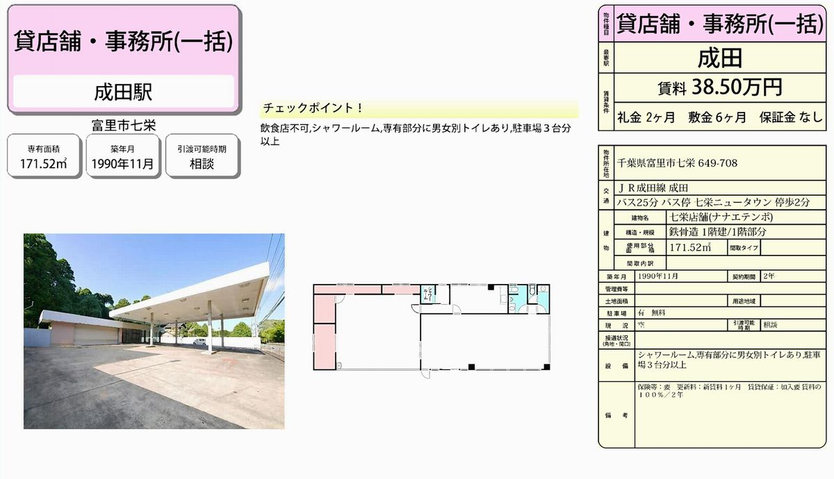千葉県富里市七栄649-708 (成田) 成田 倉庫 詳細データ