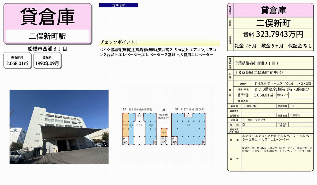 千葉県船橋市西浦3-1 (二俣新町) TN倉庫 詳細データ