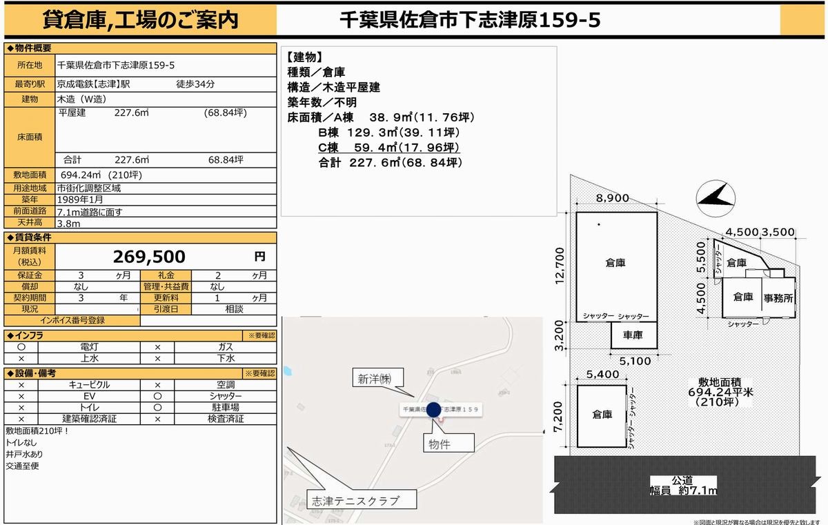千葉県佐倉市下志津原159-5 (志津) 志津 倉庫 詳細データ