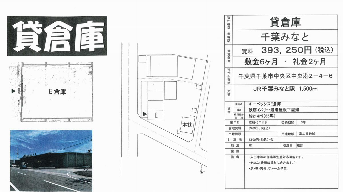 千葉県千葉市中央区中央港2-4-6 (千葉みなと) キーペックス倉庫E 詳細データ
