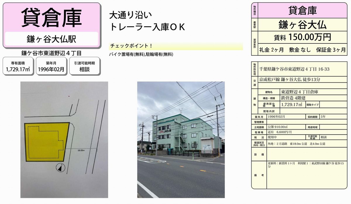 | 物件名 | 鎌ヶ谷大仏 倉庫 |