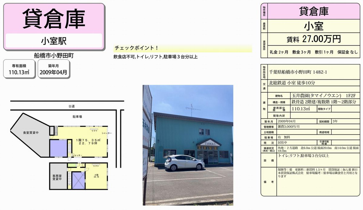 千葉県船橋市小野田町1482-1 (小室) 小室 倉庫 詳細データ